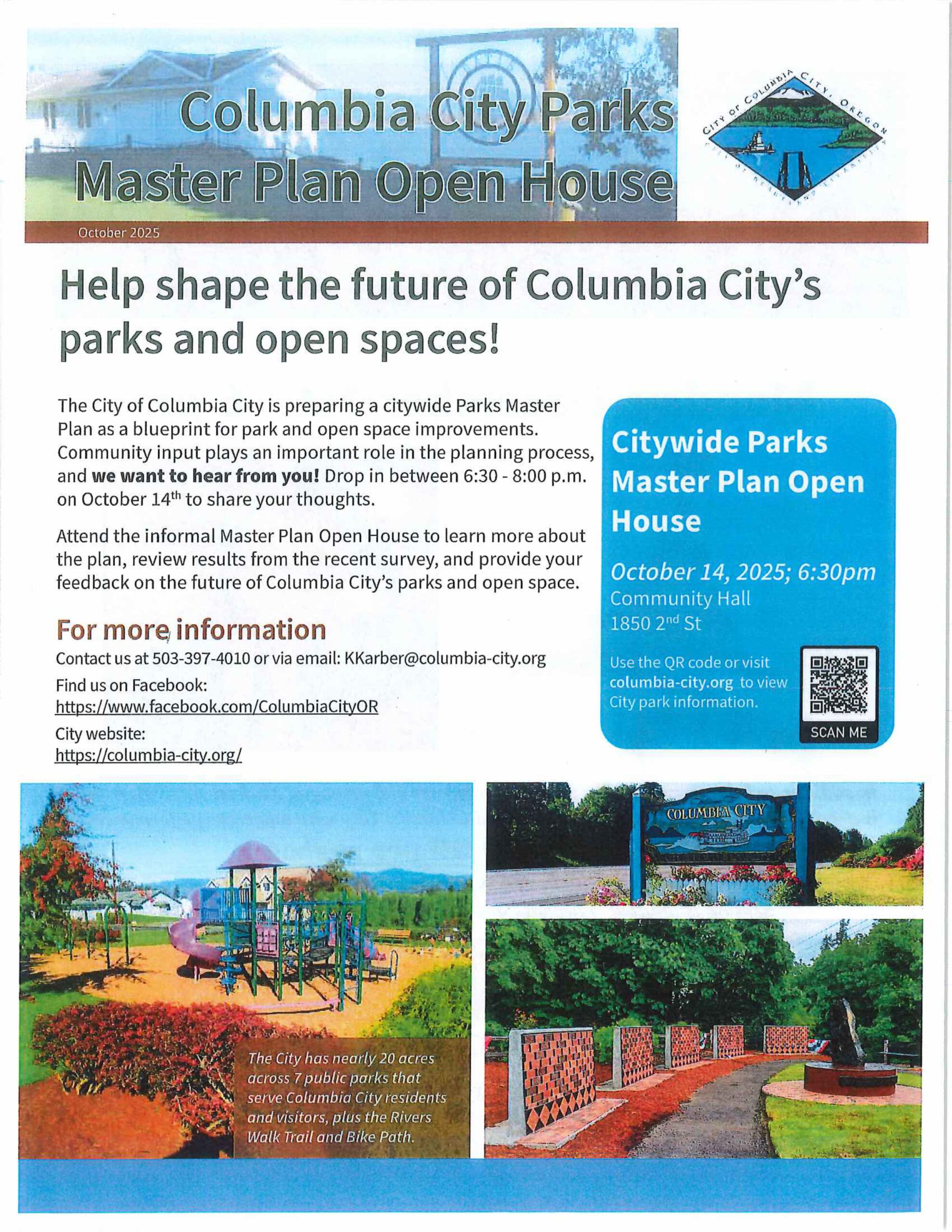 - Columbia City Parks Master Plan Open House flyer / Michael Allen Harrison Holiday Concert flyer – distributed with above newsletter